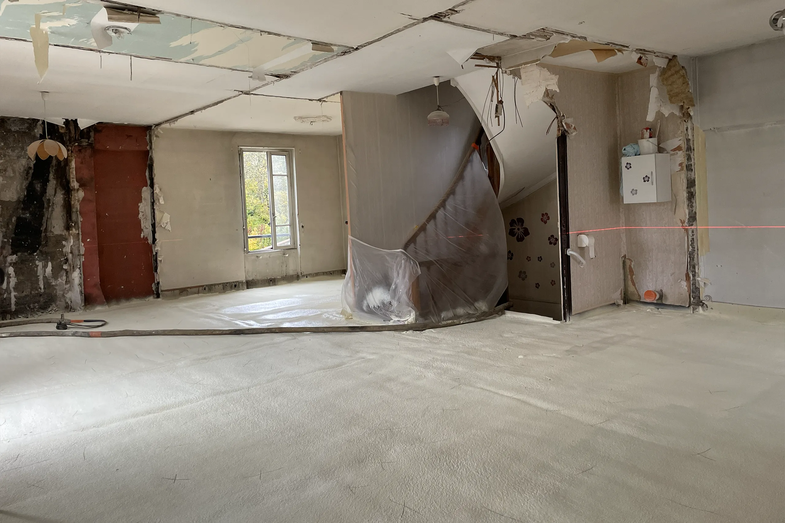 La mousse polyuréthane projetée permet de rattraper les niveaux d’un plancher sans alourdir la structure existante.